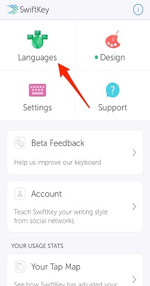 - เปิดแอป Microsoft SwiftKey: แตะ "ภาษา"