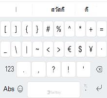 บานหน้าต่างแป้นพิมพ์ที่สอง (เข้าถึงได้โดยการแตะแป้น '123'):